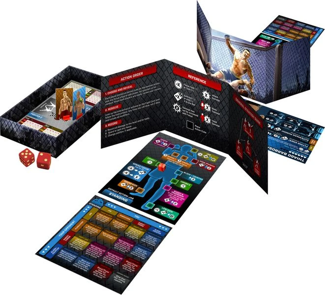 Cage Match! is the tabletop game of head-to-head, mixed martial arts combat. Styles makes fights! Control a mixed martial arts fighter from a variety of backgrounds, from boxing to freestyle wrestling to Brazilian Jiu-Jitsu. Defeat your opponent by knock out or submission. Secretly select your move, gain focus and then spend it on power moves. Every move has a counter and it might come down to a roll of the dice. Step into the cage!