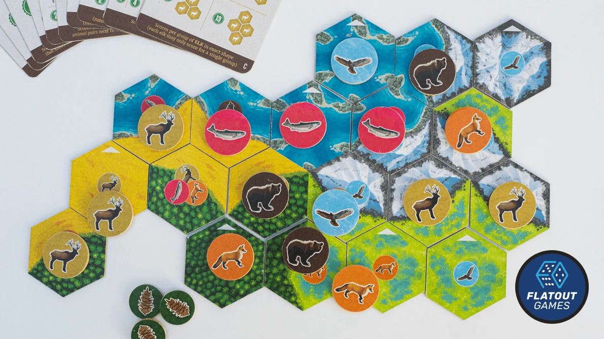 Cascadia is a puzzly tile-laying and token-drafting game featuring the habitats and wildlife of the Pacific Northwest.