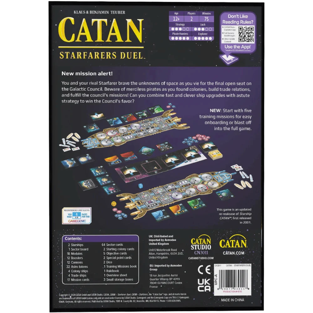 In CATAN: Starfarers Duel, you explore the vastness of space, fly to distant planets, buy and sell resources, found colonies, and establish trade relations — all while keeping an eye out for pirates who threaten mischief. Perhaps you also want to arm your spaceship to be in good shape against threats…
