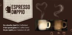 Espresso Doppio contains three espresso cups, saucers, and spoons in three colors, and your goal during the game is to place them and move them on the placemat to match the combinations depicted on your task cards.