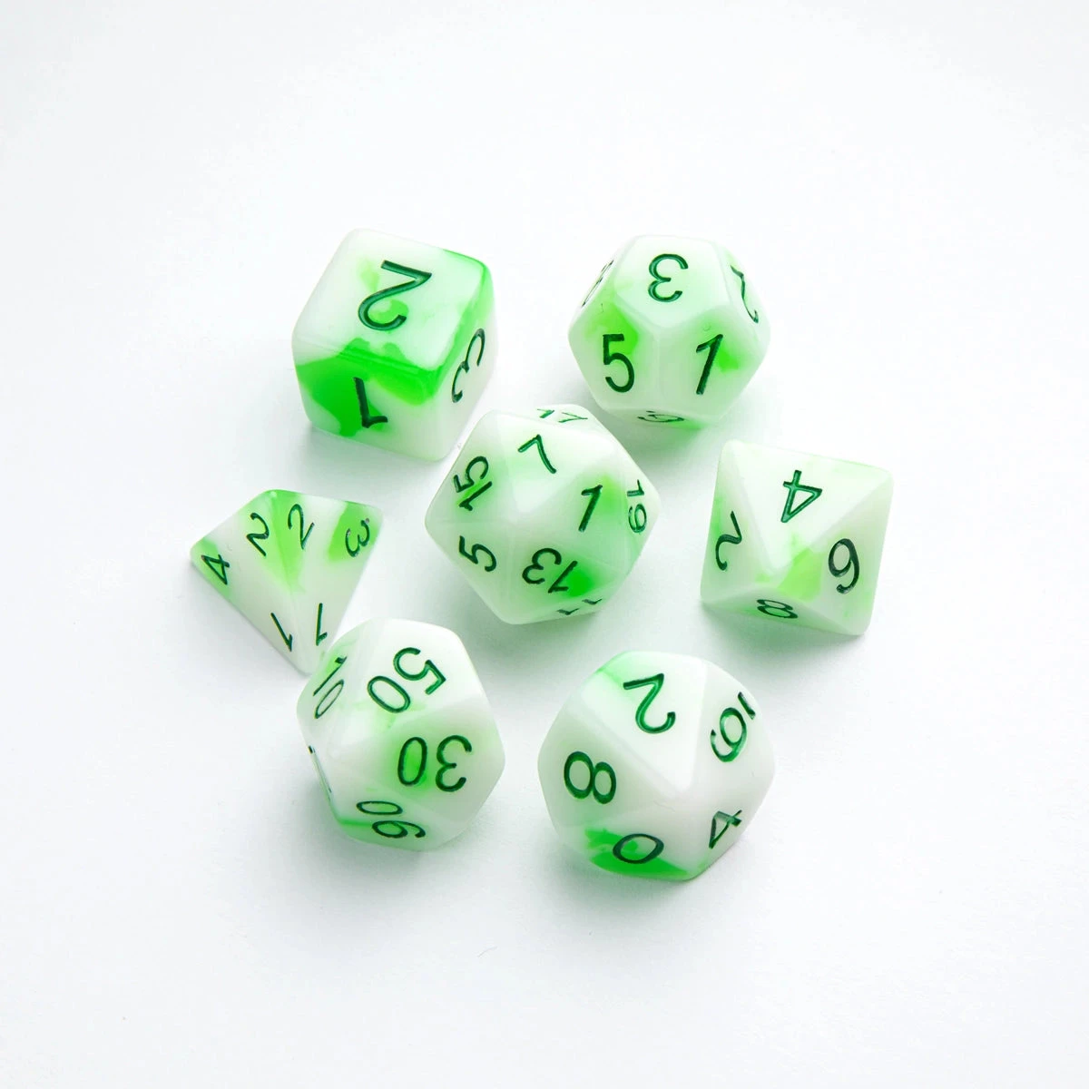 Glow in the Dark with vibrant colors - Pack contains D4, D6, D8, D10 (10 and 00), D12 and D20