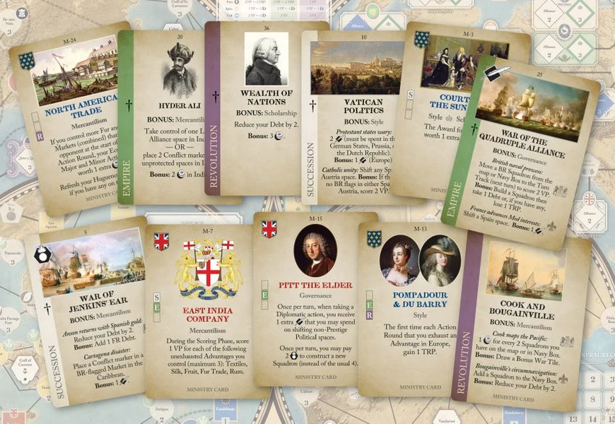 Imperial Struggle is a two-player game depicting the 18th-century rivalry between France and Britain. It begins in 1697, as the two realms wait warily for the King of Spain to name an heir, and ends in 1789, when a new order brought down the Bastille. The game is not merely about war: both France and Britain must build the foundations of colonial wealth, deal with the other nations of Europe, and compete for glory across the span of human endeavor.