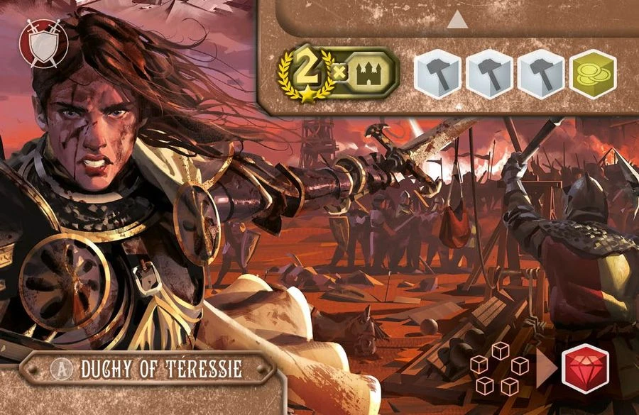 Each player produces the resources of his Kingdom in a sequential way. The resources being produced in a certain order, it is necessary to anticipate the sequences to optimize the production and development.