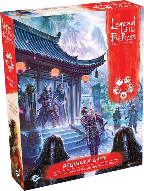 The Legend of the Five Rings Beginner Game allows anyone to take on the role of a Samurai in Rokugan With a full range of four character folios, a fully realized adventure book, a set of custom dice, a map of Rokugan, a variety of tokens and a complete set of rules including a play example, The Legend of the Five Rings Beginner Game gives newbies and veterans alike the perfect door to the Emerald Empire.