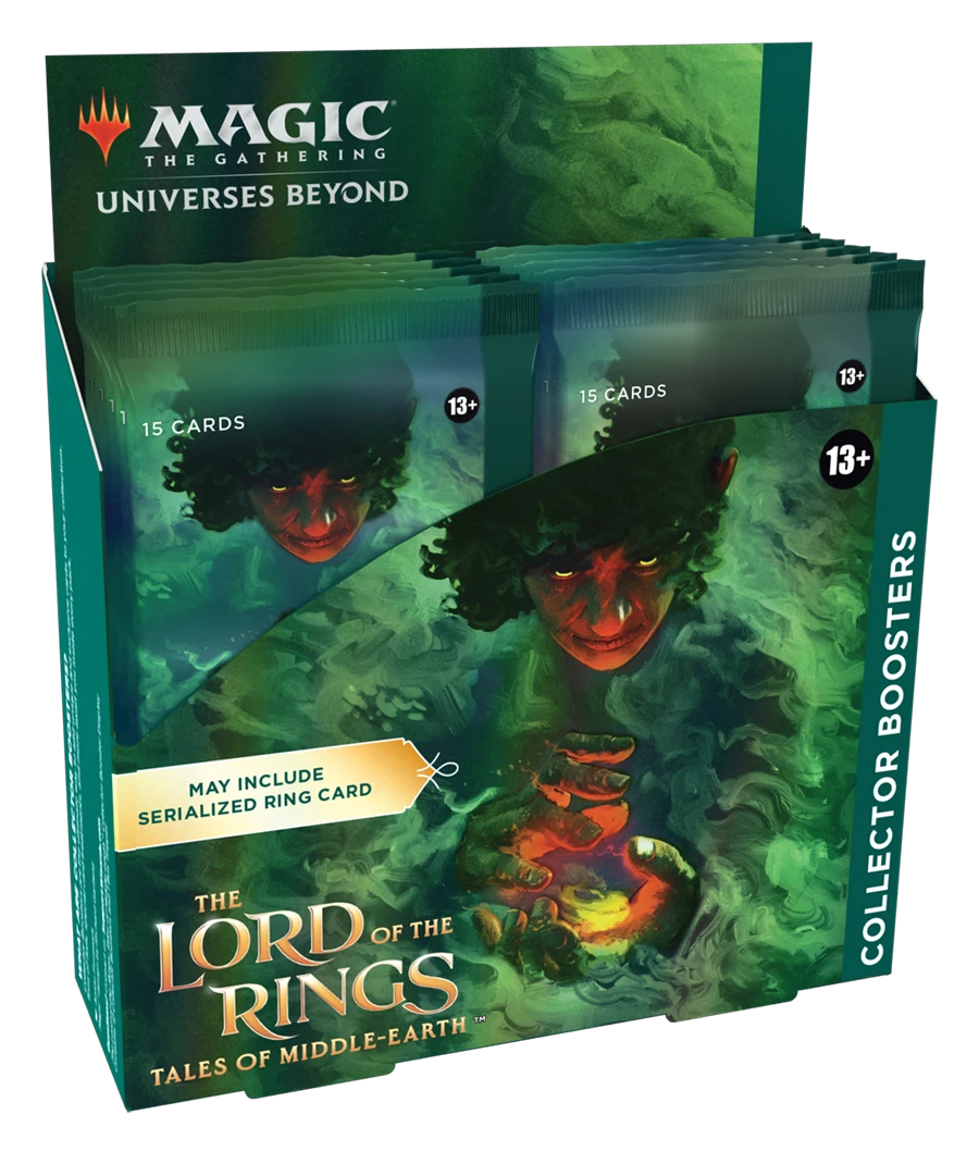 - Contents—12 The Lord of the Rings: Tales of Middle-earth Collector Boosters, with 15 MTG cards in each pack + 1 Traditional Foil Box Topper card