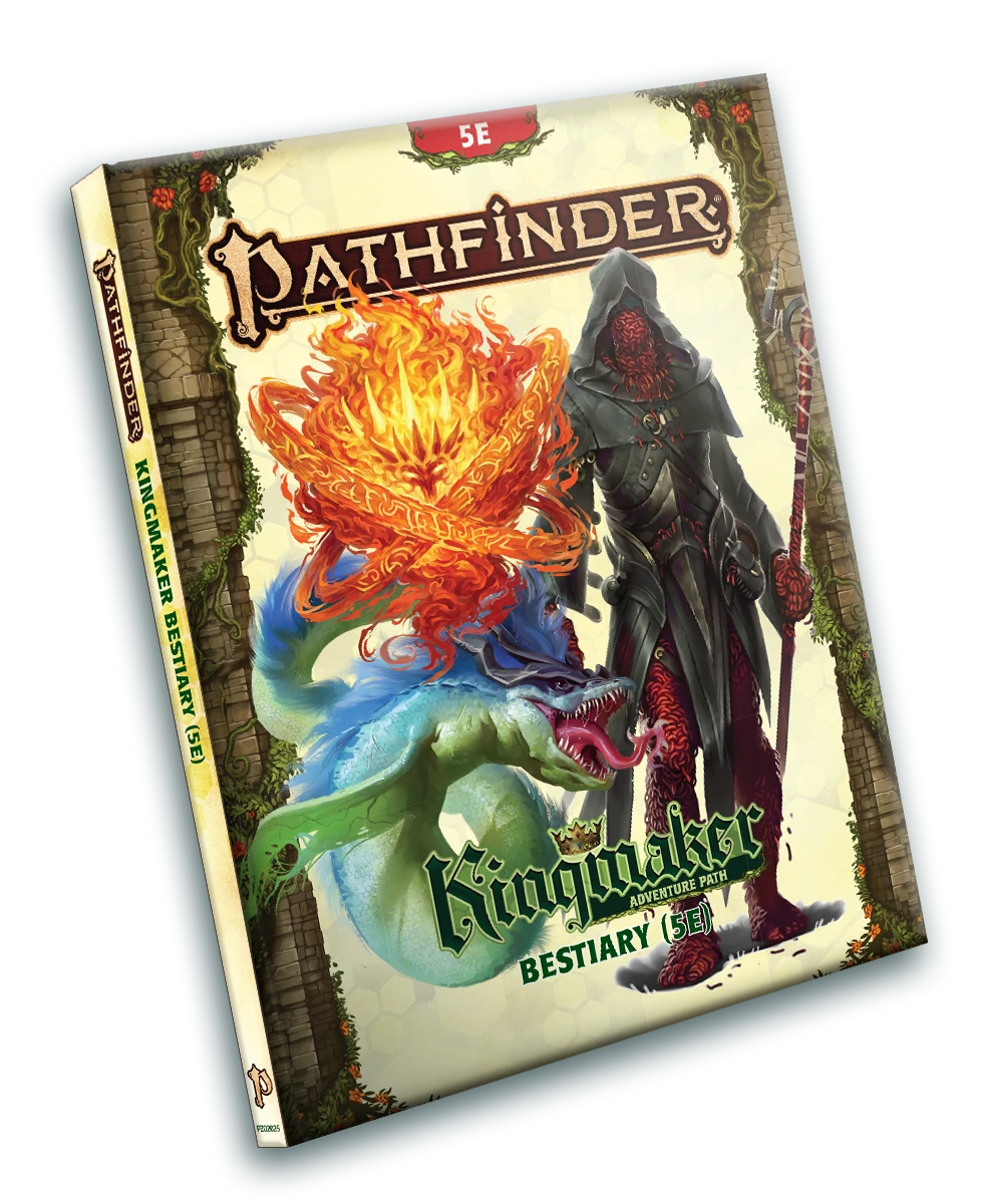 From feral beasts to supernatural sprits from the realm of fey, the Kingmaker Adventure Path forces heroes to test their might against hundreds of foes—be they bandit lords, evil kings, or demigods. This book presents rules for over 275 monsters and villains, 45 traps and hazards, and seven companion NPCs presented with a low-level and mid-level stat block, making them suitable for play as adventuring companions or even pregenerated player characters—all compatible with any Fifth Edition game. Designed to work alongside the new Pathfinder Adventure Path campaign book, this volume makes quick conversion of the campaign to 5E a breeze! Challenge your heroes while playing through the Kingmaker Adventure Path or populate a campaign entirely of your own design!