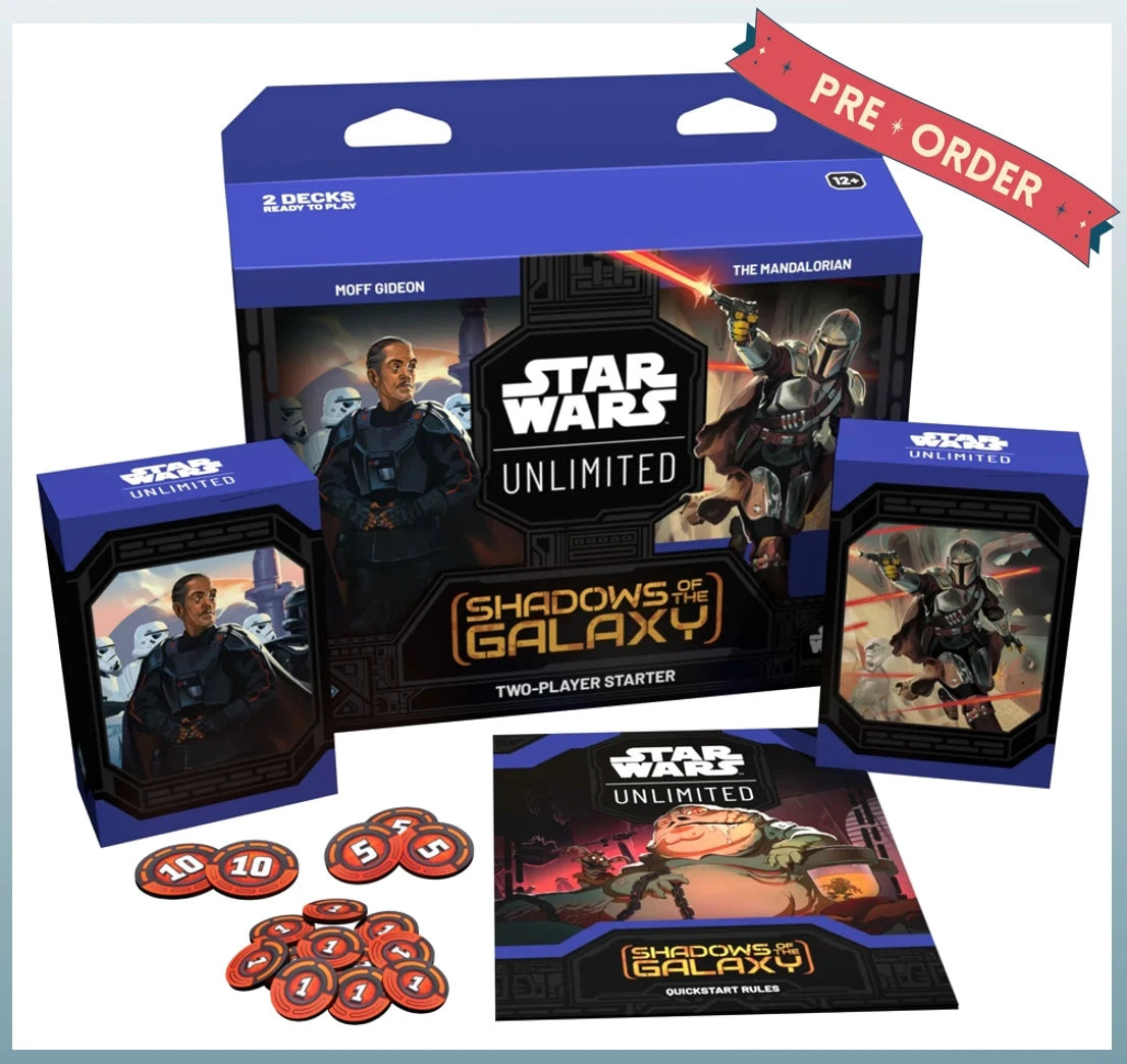The Shadows of the Galaxy set features characters and content from The Mandalorian™ series, Solo: A Star Wars Story™, The Book of Boba Fett™ series, and more! Once you have learned the game, you can expand your collection with Star Wars: Unlimited booster packs, sold separately.