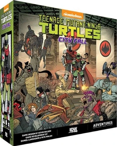 City Fall is volume two in IDW’s series of “Adventures”-branded miniatures games. Both it and volume one (Change Is Constant) are standalone games, while also being compatible with one another. Change Is Constant follows the first two story arcs of IDW’s TMNT comic universe series, while City Fall focuses on the story of one turtle’s unexpected recruitment into the Foot Clan. Each standalone box contains five unique heroes and a variety of villains associated with each story, with more than forty miniatures total