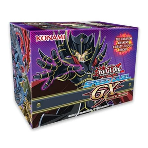 Shadows loom large over Duel Academy in the new Speed Duel GX: Duelists of Shadows! The Shadow Riders have descended upon Speed Duel and joined forces with other villainous characters from the Yu-Gi-Oh! GX animated series to cause mayhem and unleash the mighty Sacred Beasts. This box set is designed to allow up to 8 players to jump into their own dynamic gameplay experience with 8 pre-constructed Decks along with a selection of other cards that can be used to customize them.